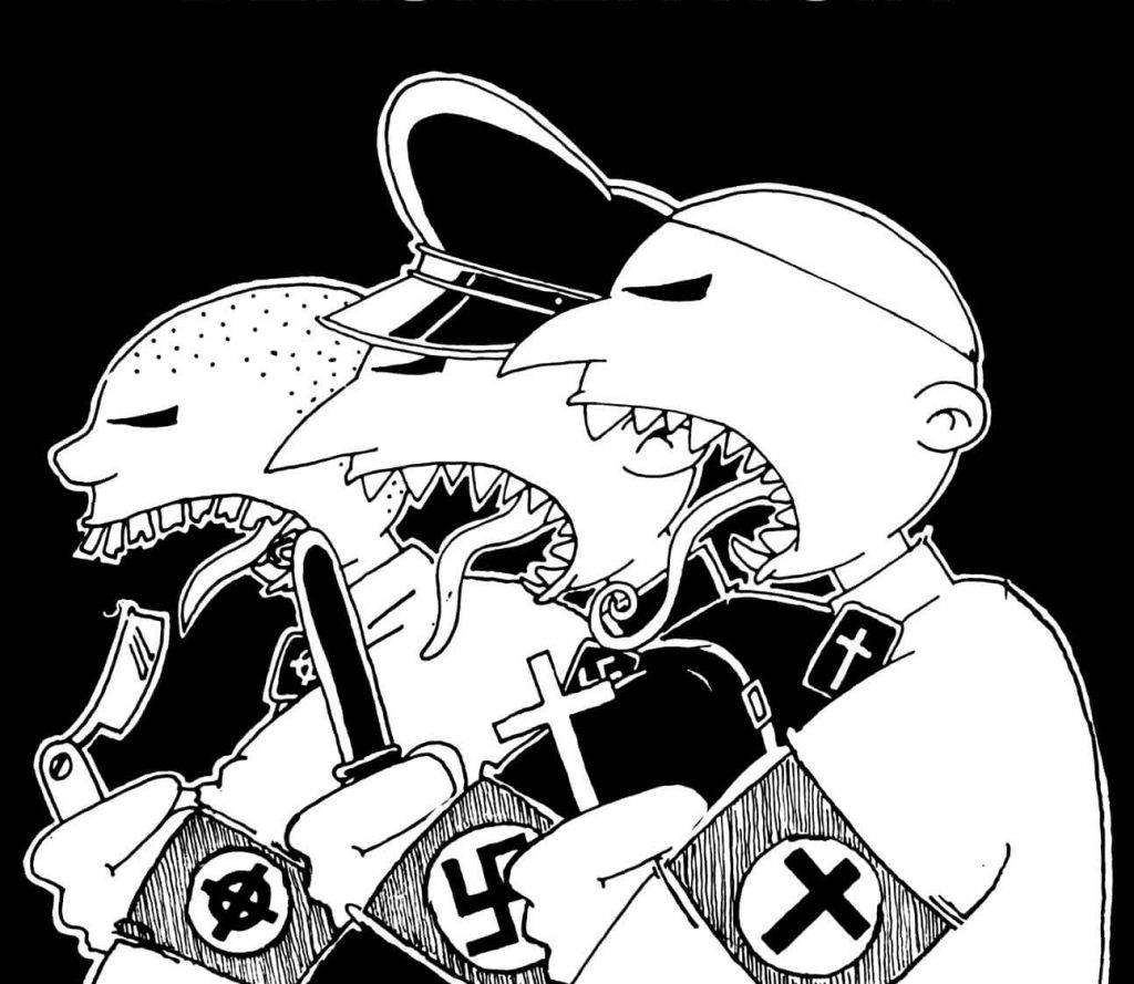 Tapage { aka Tapage Nocture } est, depuis 1984, gribouilleur de presse alternative (Kanaï, On A Faim, Le Démoniaque, Alerte Rouge, Kakofony, SDF, Opus Incertum, Est∼ce Bien Raisonnable?, Guérilla Urbaine, Violence, Desseins, Noir & Rouge, Réflexes, Viandox…) avec ou sans son personnage fétiche du Peutit Keupon ; aussi monteur de collages dans diverses réalisations vinyliques & graphiques (Haine Brigade, Bérurier Noir, Kochise, Les Kamioneurs du Suicide, Raymonde & les Blancs Becs, Cartouche, etc.) ; et bien sûr arghtiviste des quartiers lyonnais en passant par ménilmontant & montreuil → Bon pied (dans la gueule), bon œil (au beurre noir)…